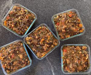 - Add the black beans, corn, dill and lemon juice. Cook another 15 minutes. Adjust the seasonings and stir in the remaining ½ cup parsley.