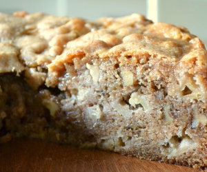 - Add walnuts, apple chunks and Calvados all at once and stir batter until pieces are evenly distributed.