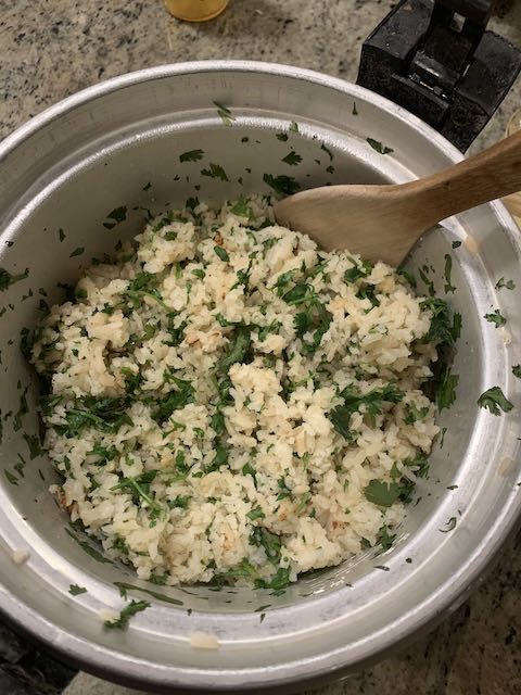 - Fluff the rice with a fork. Pour lime juice over the rice and toss with chopped cilantro.