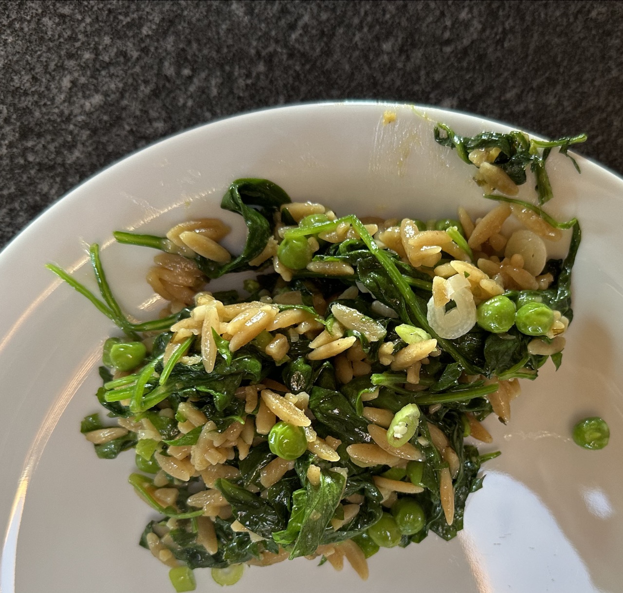 Stir in cheese, peas (if you like) and dill, cover the pan, and cook for another 1 minute, to finish cooking and warm the peas. To serve, sprinkle with more cheese and the reserved scallions.