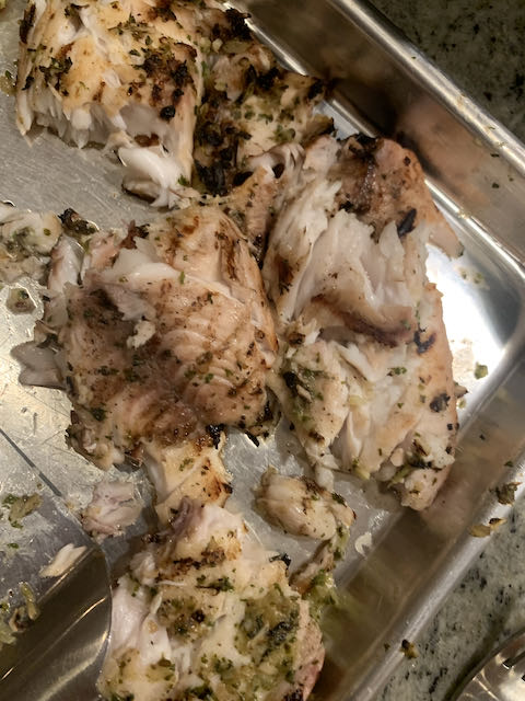 - Scrape the marinade off the fish and grill until it is just opaque in the center, 3 to 5 minutes per side. Transfer to a serving platter. Warm the tortillas on the grill (getting some marks is good).