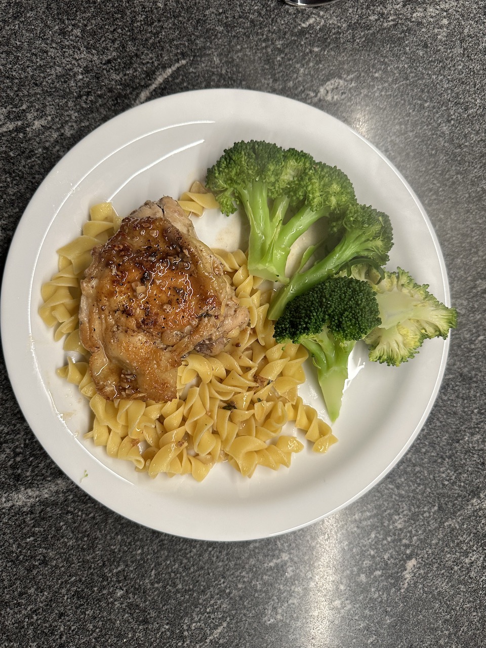 Spoon the sauce over the chicken and serve with the butter noodles