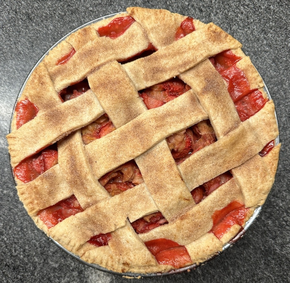 Top with pastry - latticed.